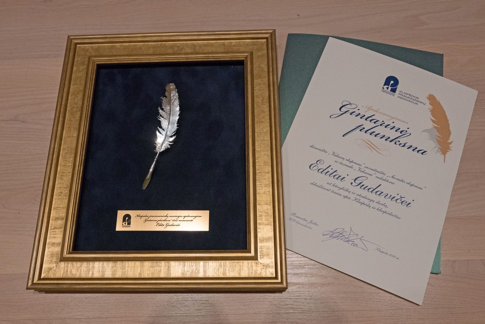 Šiemet šis garbingas apdovanojimas įteiktas „Vakarų ekspreso“ žurnalistei Editai Gudavičei. Žurnalo „Vakarai“ ir „Savaitės ekspresas“ redaktorei taip padėkota už ilgametį darbą ir kūrybiškumą skleidžiant žinias apie Klaipėdą ir klaipėdiečius.