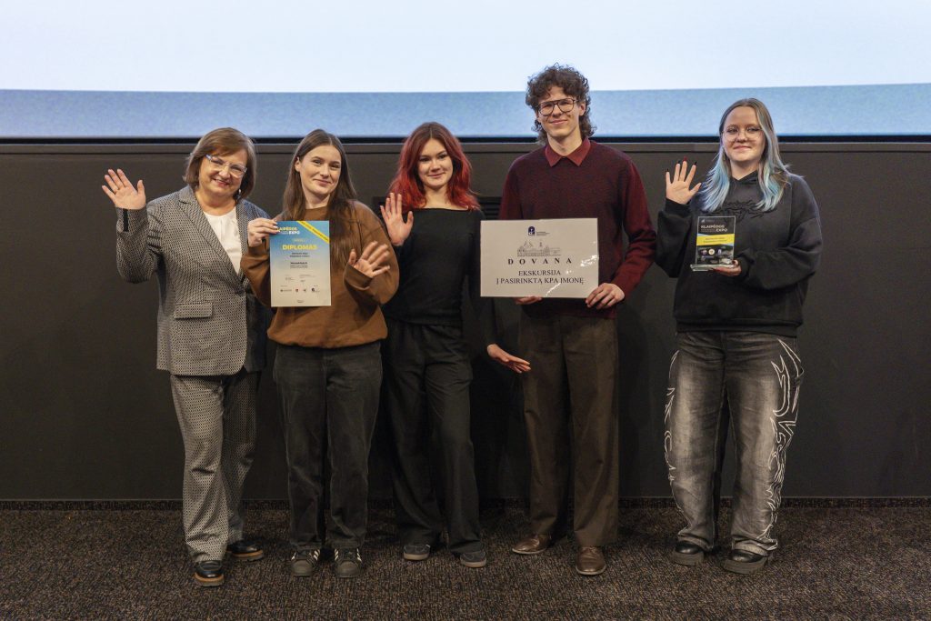 Dalyvavome vertinimo komisijoje ir apdovanojome komandą už geriausią idėją Klaipėdai – „Aukuro“ gimnazijos moksleiviai sukūrė elektroninę platformą „MoveMatch“, kuri pagal individualius kriterijus parenka sveikatinimosi, sporto ir laisvalaikio veiklas.